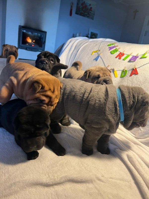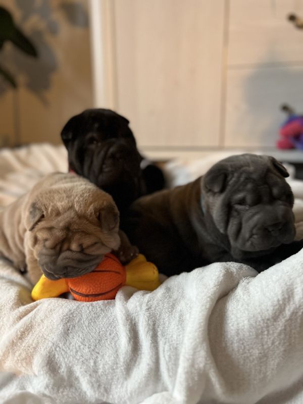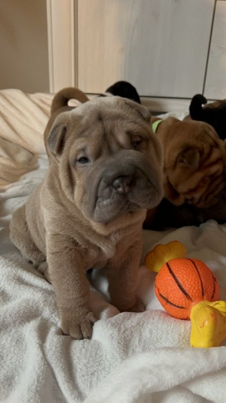 Mamy do zaoferowania 6 uroczych szczeniąt shar pei , które szukają cudownego domu! Są one piękne, zdrowe i śliczne, mają różnorodne umaszczenie, które dodaje im charakteru i uroku. Mamy brązowego, czarnego, kremowego, fioletowego (liliowego), srebrnego (niebieskiego) oraz kremowo-brązowego szczeniaka.