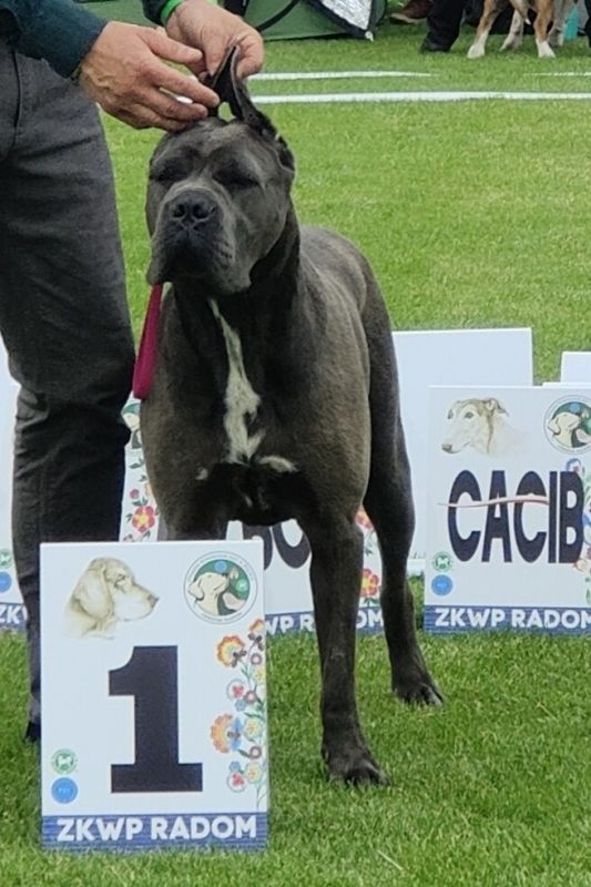 Sunia bardzo elegancka o doskonałych proporcjach, wygrywająca większość wystaw w PL , doskonale się prezentuje jako wzorcowe Cane Corso, koloru błękitnego, uwielbia pracę na placu szkoleniowym ?