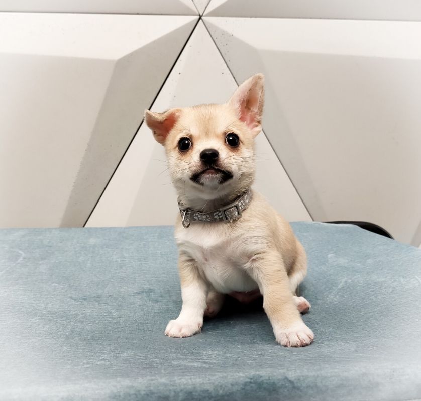Piesek jest zaszczepiony oraz odrobaczony stosownie do wieku, jest także zachipowany i po przeglądzie hodowlanym. Piesek o bardzo ładnej budowie, prostym grzbiecie, dobrze osadzonym ogonie. Ogonek prosty i bez załamków. Piesek bardzo zadbany, skóra elastyczna, sierść o prawidłowej strukturze. Kątowanie prawidłowe. Uszka bardzo dobrze osadzone, piękne i dobrze rozwinięte główki. Ciemiączko całkowicie zrośnięte. Prawidłowa kufa, zgryz zębów mlecznych 6/6 nożycowy. Jąderka dobrze wyczuwalne. Piesek ma wspaniały charakter, jest radosny i wesoły, nauczony wstępnie czystości. Pieski wychowywały się w domu z ludźmi i z innymi dorosłymi psami rasy chihuahua zatem są bardzo dobrze zsocjalizowane.