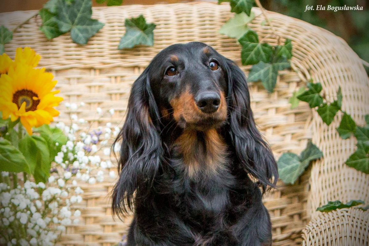 Bardzo zrównoważona, spokojna, pełna elegancji suka, średniej wielkości, proporcjonalna. Piękna klatka piersiowa i ruch.