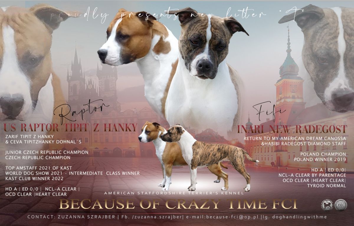 US Raptor Tipit z Hanky (Młodzieżowy Champion Czech, Champion Czech, Zwycięzca Klubu KAST 2022, Top Amstaff KAST 2021, BISS, Zwycięzca klasy pośredniej na wystawie światowej Brno 2021)