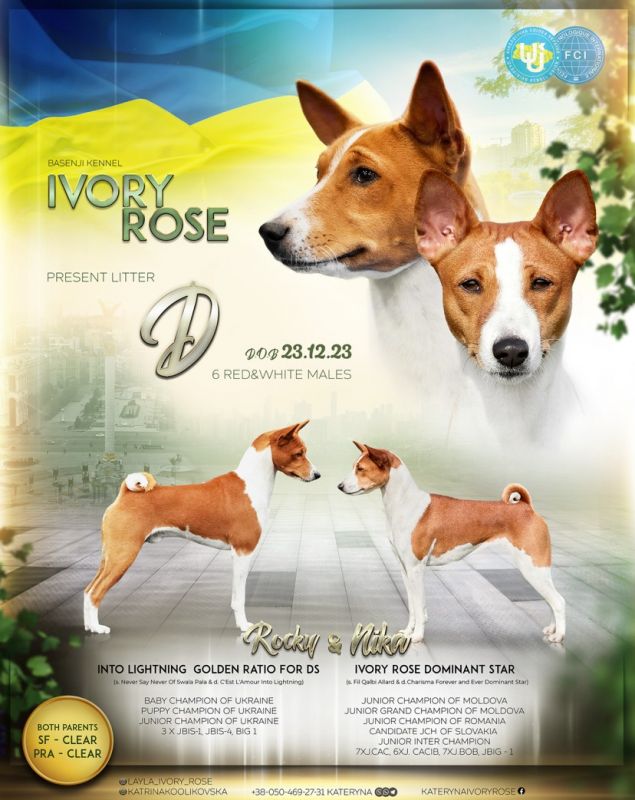 В розпліднику "IVORY ROSE" підростають грайливі басенджата народжені від чудової пари Чемпіонів.