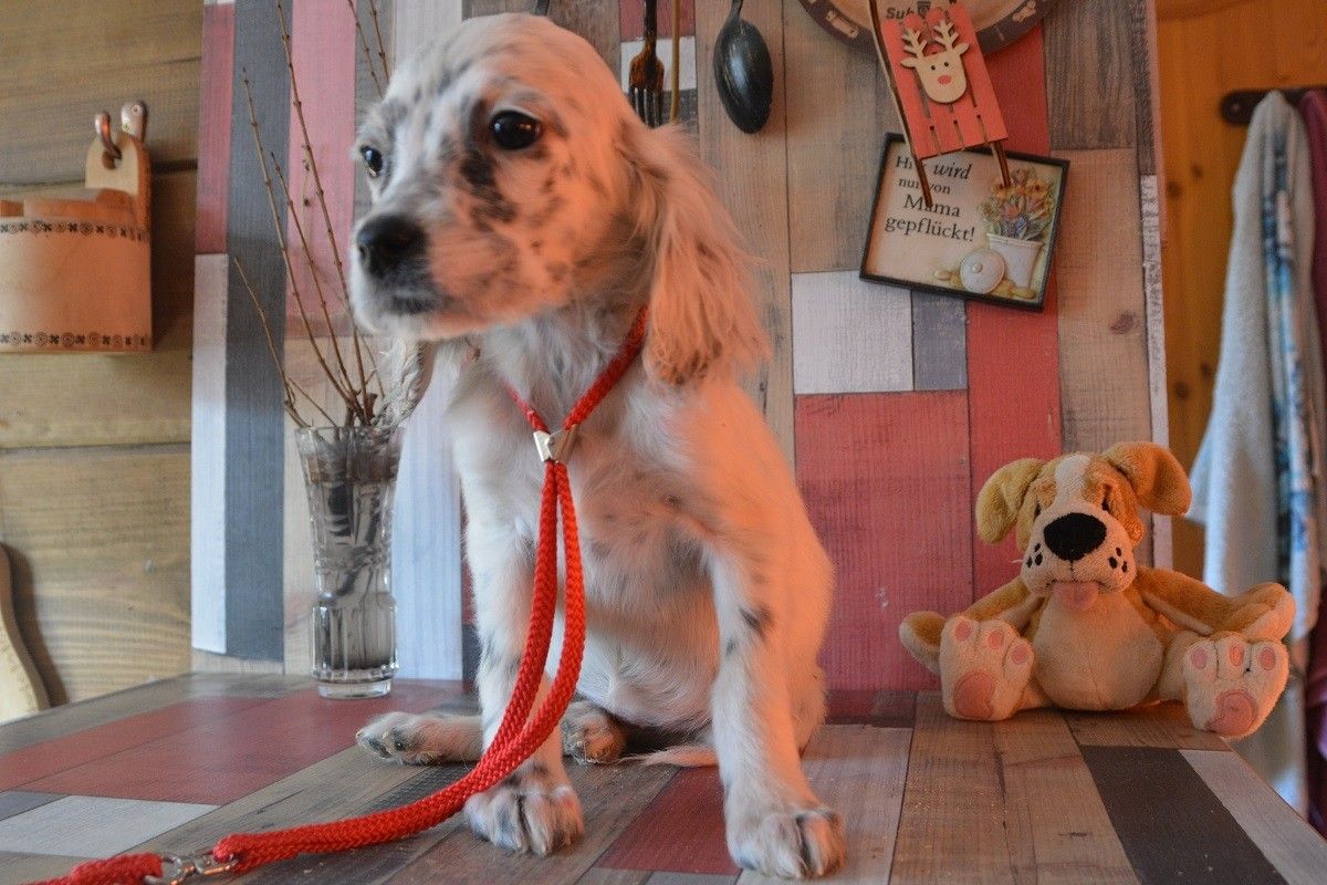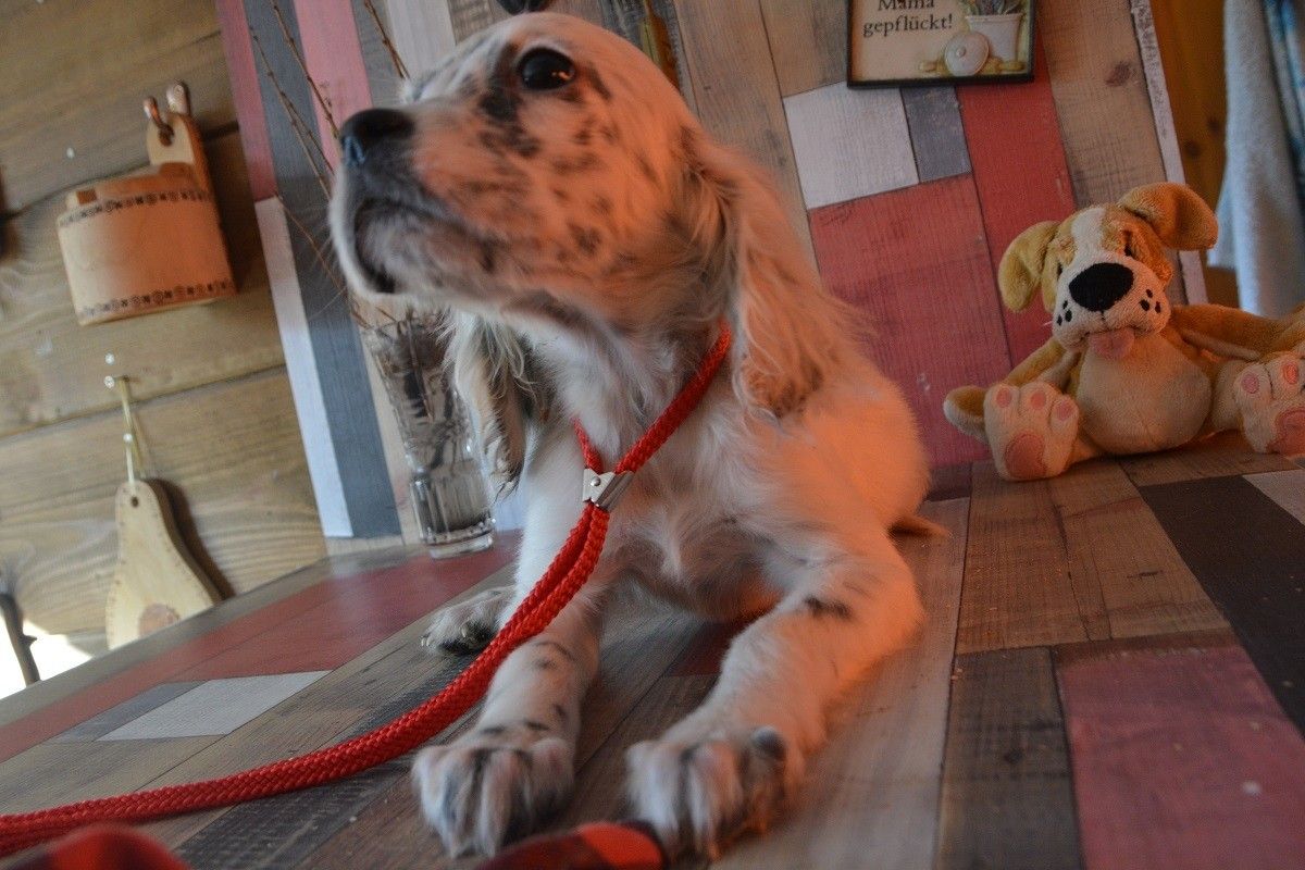 Очень нежная, весёлая, любит играть и выполнять команды. Общается больше с людьми, чем с собаками. Очень ласковая и нежная.