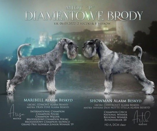 Rodzicami naszych maluch贸w s膮 Maribell Alarm Beskyd i Showman Alarm Beskyd - pochodz膮 one z bardzo znanej i jednej z najlepszych w Europie czeskiej hodowli.