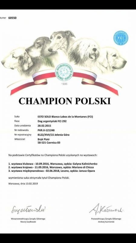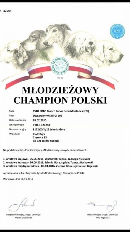 JChPL-MD-MK ChPL ChMD ChMK ChSRB GrandChMD ESTO SOLO Blanco Lobos De L