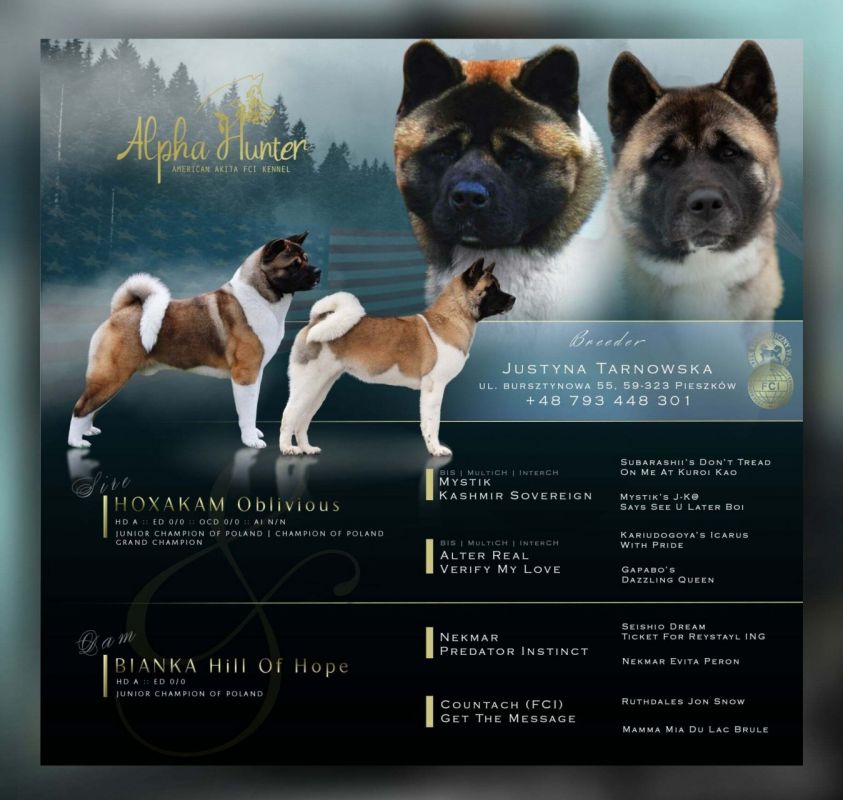 | Bianka Hill of Hope | Hoxakam Oblivious | 17.11.2024 | 3 psy, 1 suka |