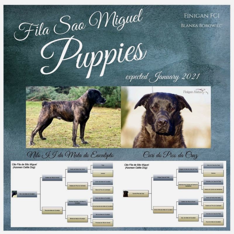 W hodowli Finigan (FCI) zarejestrowanej w ZKwP o/Piaseczno, urodziły się szczeniąt rasy Căo Fila de Săo Miguel.