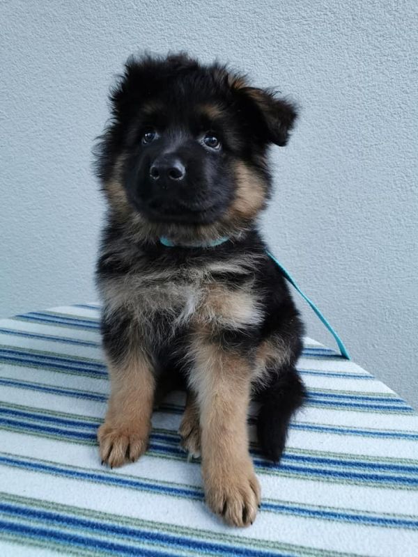 Rodzice to owczarki niemieckie krótkowłose - w miocie urodziły się szczenięta krótkowłose oraz długowłose.