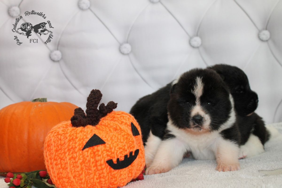 Z radością pragniemy poinformować, iż 12.10.2021 w naszej domowej hodowli urodziły się szczenięta rasy akita amerykańska. Dostępne są dwie suczki i sześć piesków.