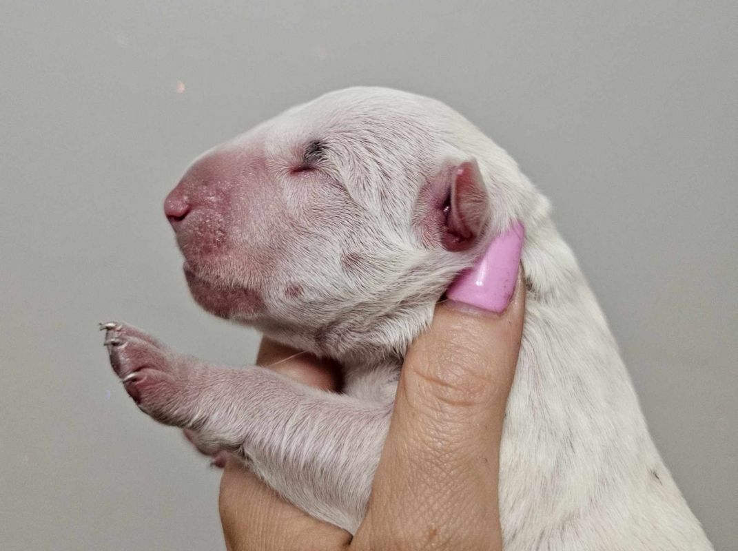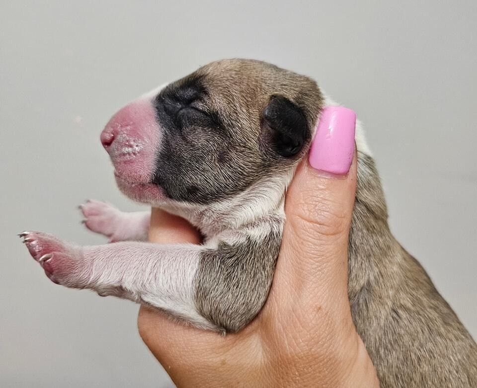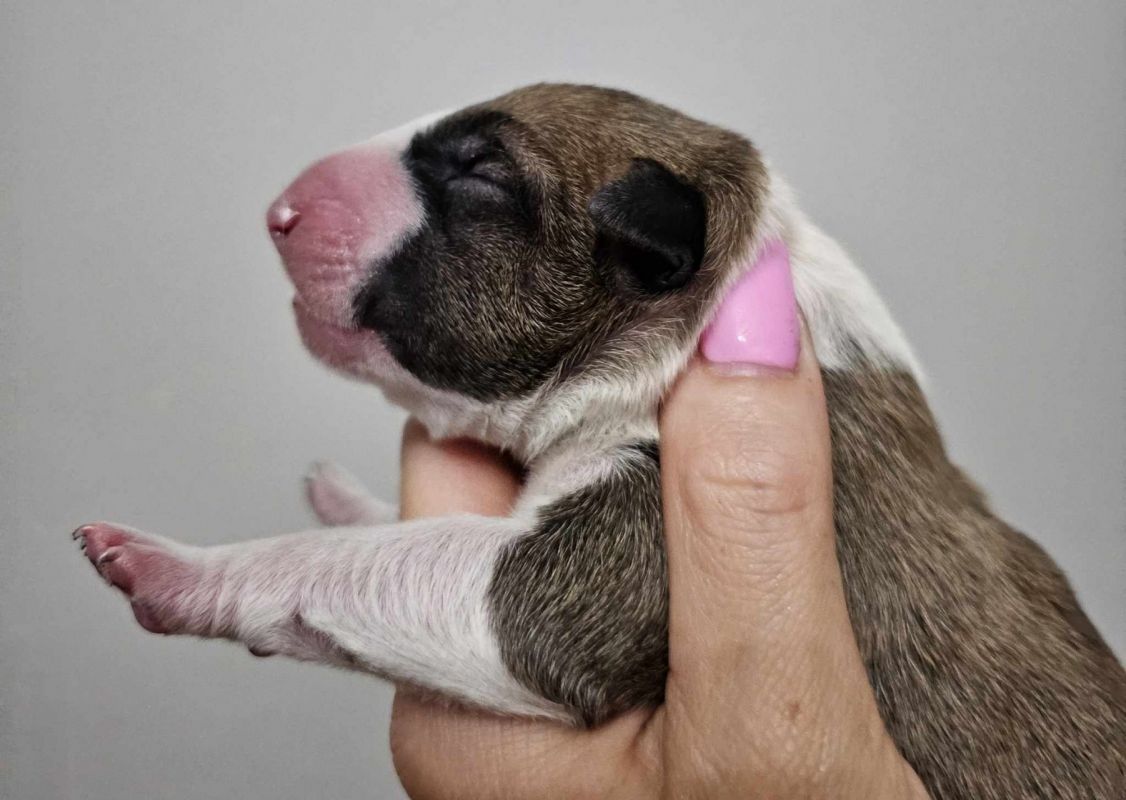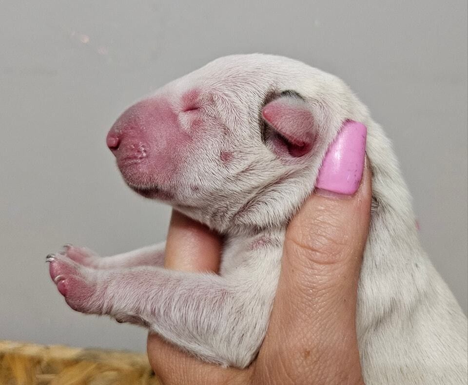 W dniu 16.08.2023 w naszej hodowli Resabil FCI przyszły na świat szczeniaczki bulteriera standardowego po przebadanych i zdrowych rodzicach.