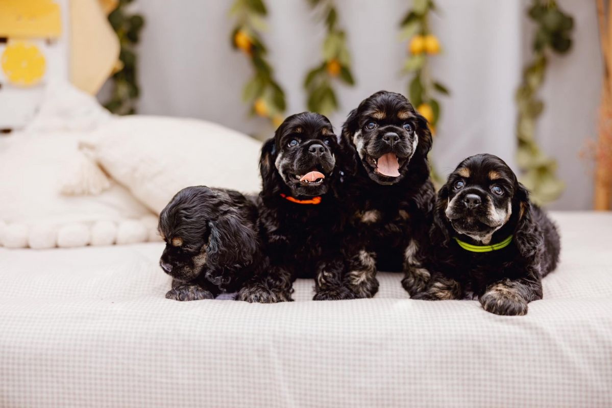 W hodowli Soul of Woods FCI mamy wolne szczenię American Cocker Spaniel które szuka nowego domu. Umaszczenie czarne podpalane (black&tan) Szczenięta przyszły na świat 5.05.2024 po utytułowanych rodzicach i przodkach - 4 pokolenia Interchampionów. Mama szczeniąt jest aktualnym Zwycięzcą Polski 2024 ten prestiżowy tytuł zdobyła dwa lata z rzędu jako dorosła suka, pierwsze swoje Zwycięstwo Polski zdobyła jeszcze w klasie młodzieży w 2021r. Wszystkie tytuły rodziców są wypisane w grafice w galerii zdjęć. Dodatkowo ojciec szczeniąt zdążył zdobyć tytuł Champion Czech. Szczeniaki są radosne i żywiołowe, ale również kochają się tulić. W hodowli są socjalizowane z innymi psami. Uwielbiają się bawić zabawkami zwykłymi jak i grającymi, więc hałas i odgłosy życia codziennego nie są im straszne. Załatwiają się na matę. Szczenięta są odrobaczone i zaszczepione, zgodnie z wiekiem i kalendarzem szczepień,a także zachipowana. Posiadają metryki, która pozwalają do zarejestrowania w Związku Kynologicznym w Polsce, w celu wyrobienia rodowodu.