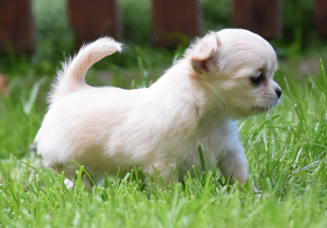 Zadziorna i wesoła sunia, o pięknej anatomii i dużej głowie.