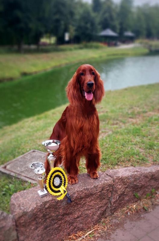 Osiągnięcia wystawowe mamy: INTERNATIONAL SHOW CHAMPION ( C.I.E ), Junior Champion od Poland, Champion of Poland, Grand Champion of Poland, Champion of Hungary, Champion of Lithuania. Polish TOP Dog 2019 - drugie miejsce w rasie seter irlandzki. Zaliczone Próby Polowe.