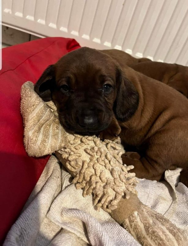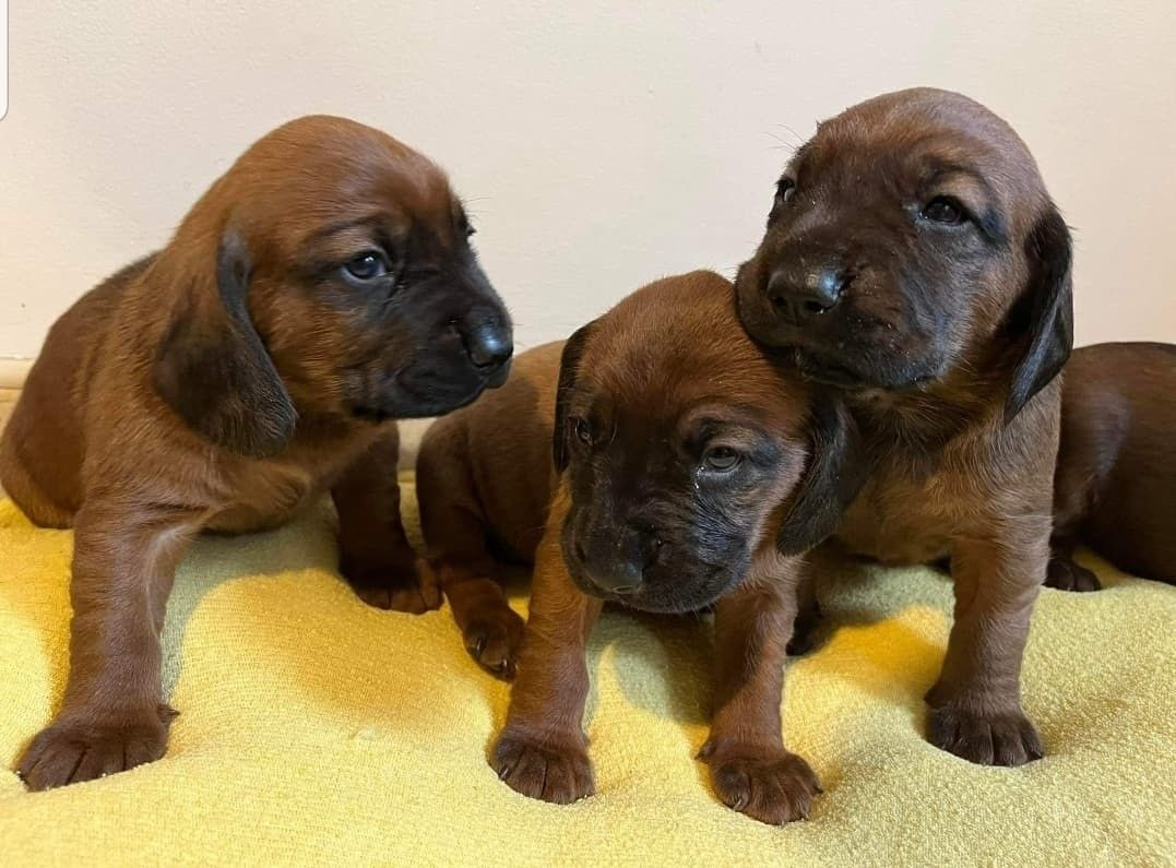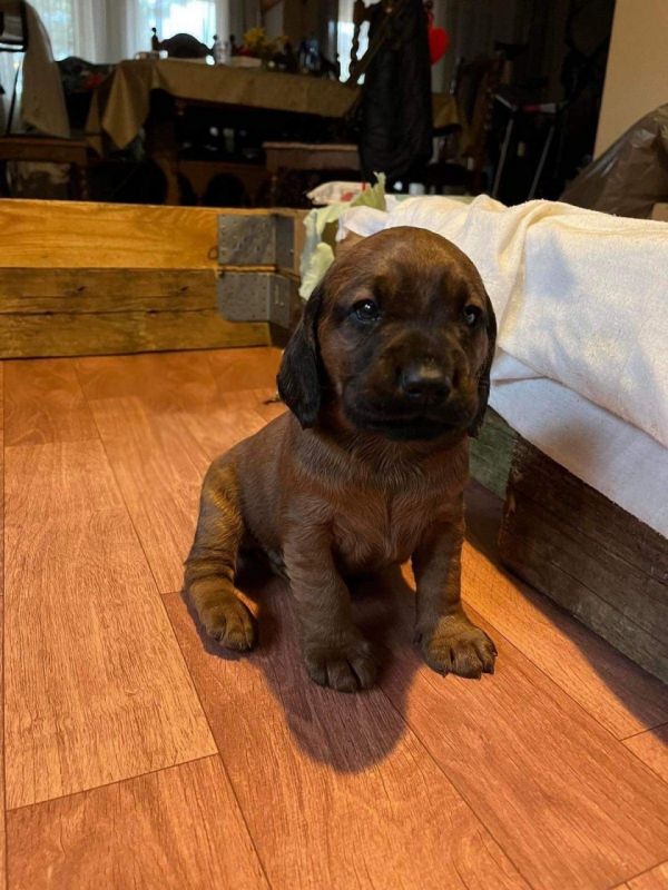 Posiadam na sprzedaż szczenięta Posokowca Bawarskiego urodzone 3.02.2022r. Szczenięta będą gotowe do wydania pod koniec marca/ początek kwietnia. Rodzice szczeniąt są psami pracującymi, sprawdzają się w terenie. W momencie odbioru będą zachipowane, odrobaczone, zaszczepione oraz z metryczkami.