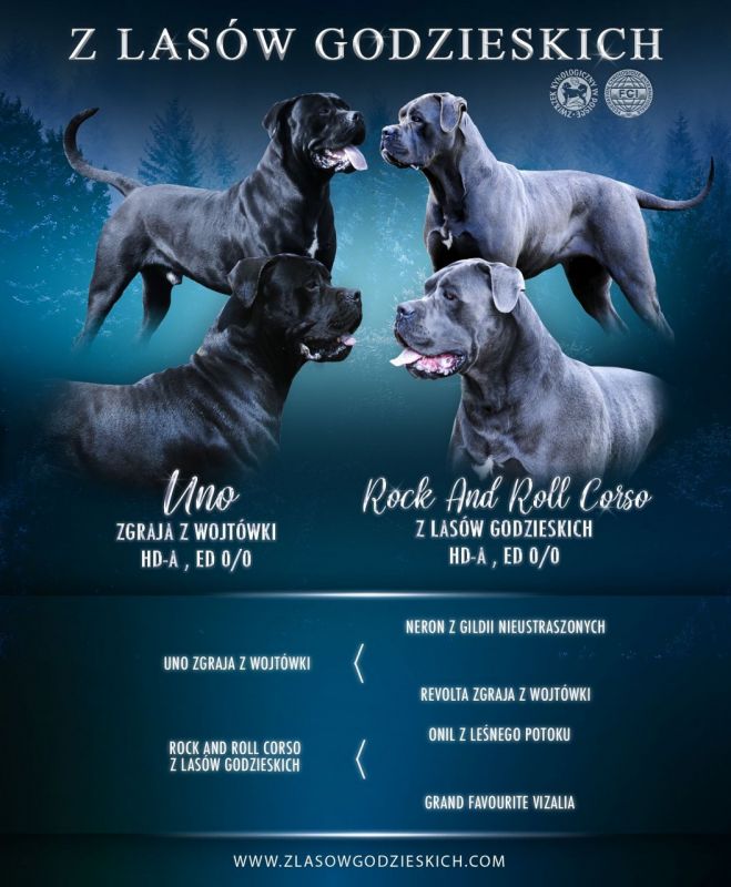 | Rock and Roll Corso z Lasów Godzieskich (Zumba) | Uno Zgraja z Wojtówki ( Toudi) | 11.05.2021 | 4 psy, 3 suki |