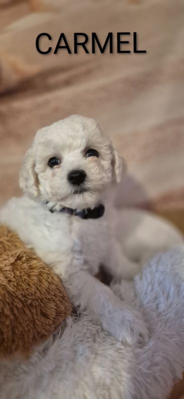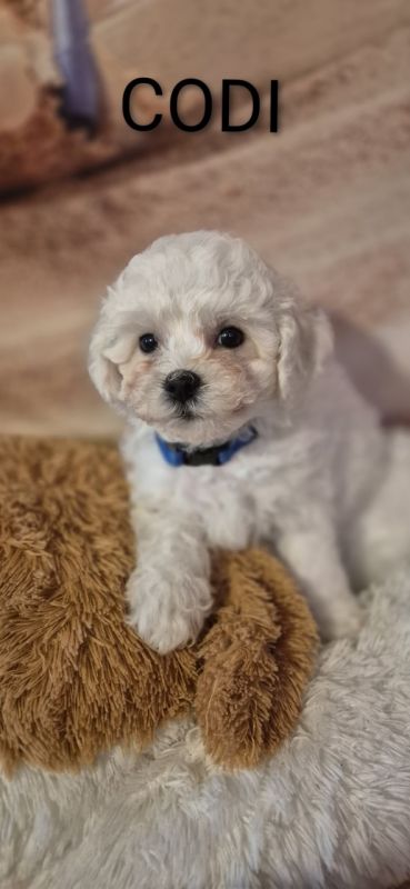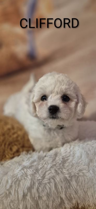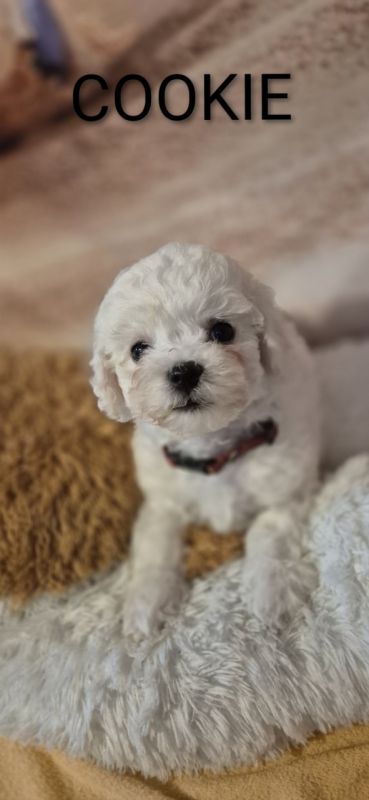Szczenięta Bichon Frise wychowywane w domu z dziećmi w wieku szkolnym i innymi dorosłymi psami.