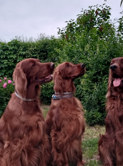 Ірландські червоні сетери - це порода собак, яка вражає своїм чудовим забарвленням і прекрасною будовою тіла. Вони є енергійними і жвавими собаками, які потребують багато руху і активності. Їх густа червона шерсть надає їм неперевершений вигляд і робить їх особливо привабливими. Ця порода є відмінними спортивними партнерами і чудовими сімейними собаками.