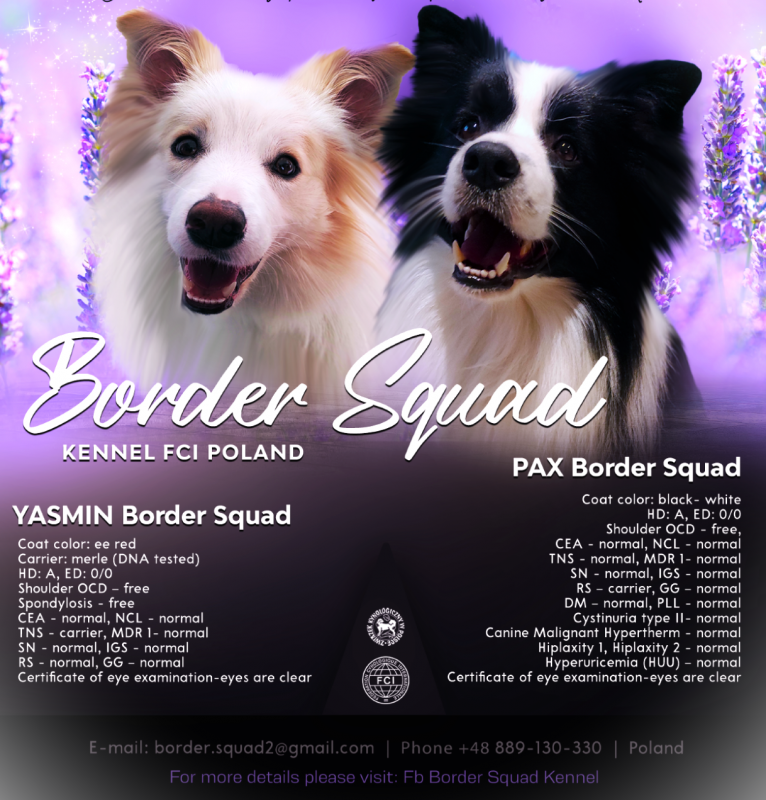 | YASMIN Border Squad (FCI) | PAX Border Squad (FCI) | 01.12.2025 | 5 собак, 3 суки |