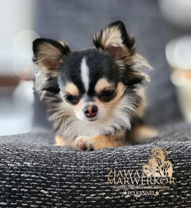 Chihuahua długowłosy kremowa suczka . Młodzieżowym Championem Polski