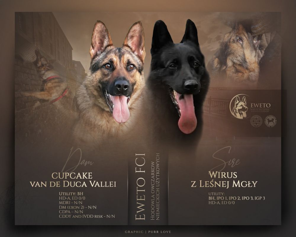 Wirus – reproduktor pochodzący z polskiej hodowli, kładącej duży nacisk na wyszkolenie, jest psem niezwykle inteligentnym oraz pełnym temperamentu. Jego zapał do pracy oraz zaangażowanie jakie wkłada w każdą wykonywana komendę – przekłada się na jego wyniki na międzynarodowych egzaminach pracy psów użytkowych.