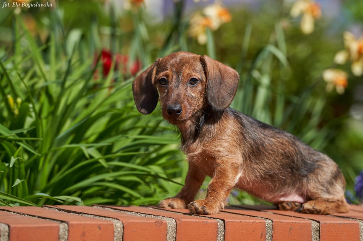 Jamniczka Szorstkowłosa Królicza z hodowli Jantarowe Wzgórze, po rodzicach championach: suce ROSY of A Dog and a Half Long i psie APOLLO Łódzka Ferajna (hodowle zarejestrowane w ZKwP-FCI), szuka Rodziny i nowego domu.