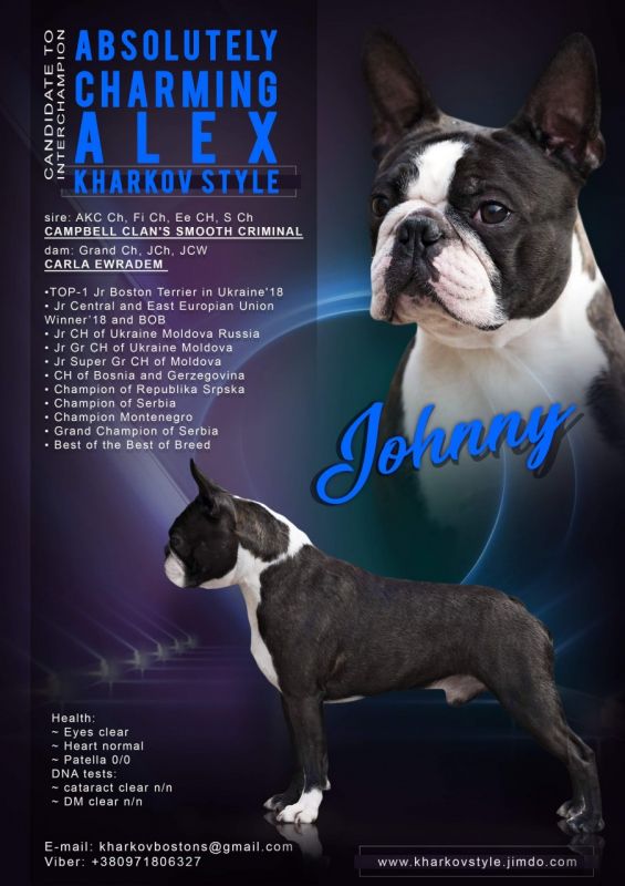 Син видатного американського собаки, інтер, мульти чемпіон. Має багато дуже гарних нащадків в Америці, Європі.