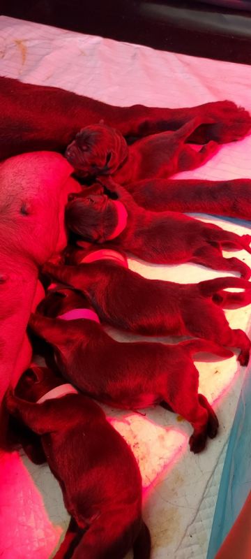 Piękny i zdrowy miot. Wszystkie szczenięta zdrowe i żywotne w wieku dwóch tygodni.