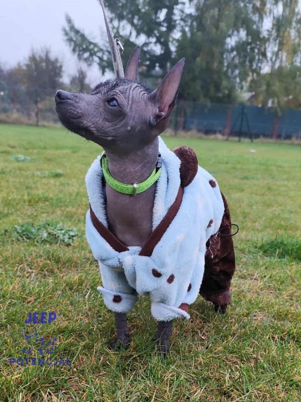 Dostępny jest ostatni szczeniak z miotu, nagi piesek JEEP. Jest bardzo towarzyski i kontaktowy, chętnie współpracuje z człowiekiem, ale jak na xolo przystałao miewa własne zdanie na pewne tematy.