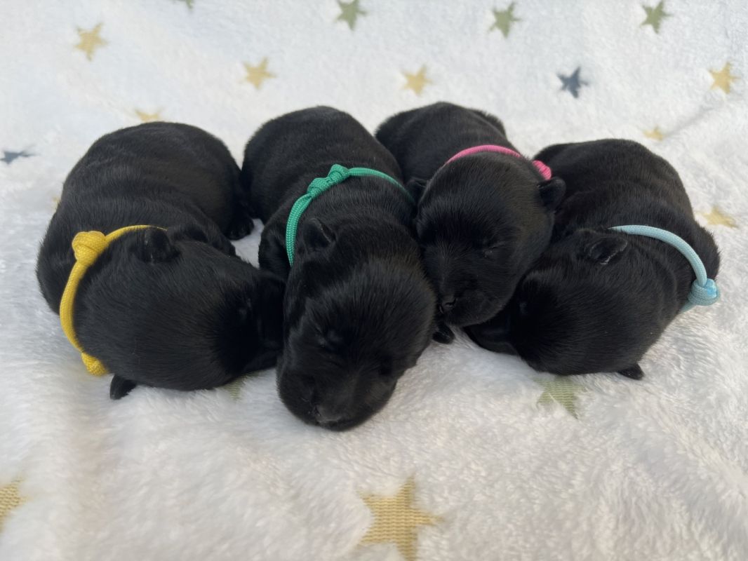 Dostępne są 4 suczki w kolorze czarnym. Szczęnięta zaszczepione i odrobaczone będą gotowe do wydania około 10.05.2025